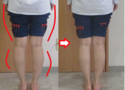 ・外側に膨らんだ、脚の骨格ラインが真っ直ぐになります。